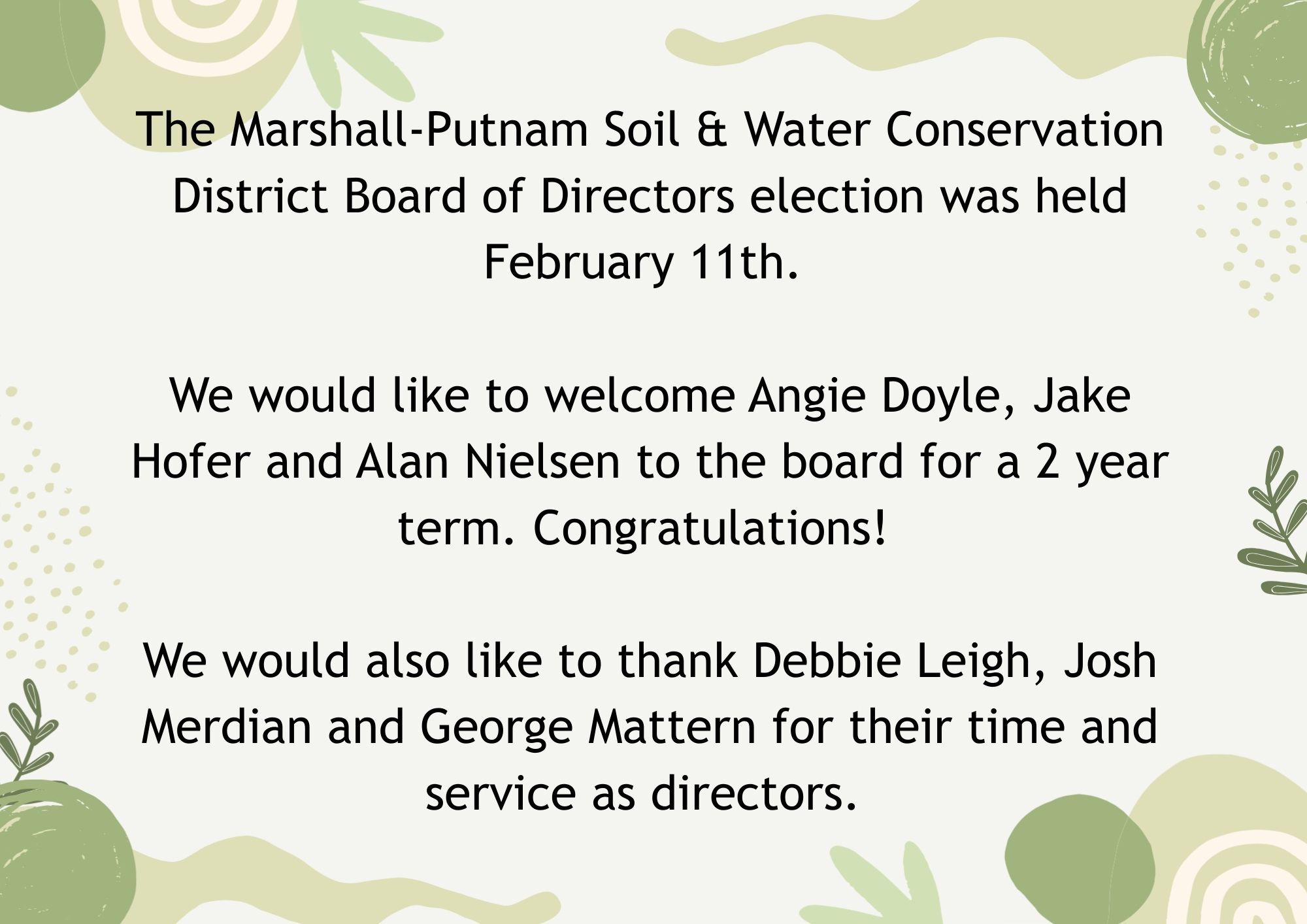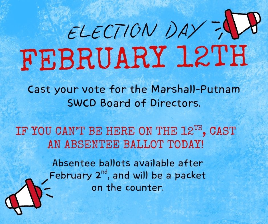 Welcome to the Marshall-Putnam Soil and Water Conservation District. Partnering with landowners to achieve sustainable conservation goals.